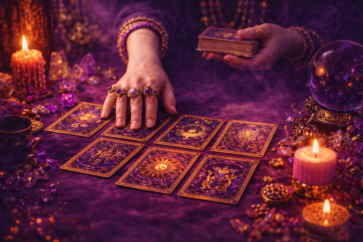 A través de tiradas de tarot, rituales energéticos y consultas espirituales especializadas, trabajamos para aportar orientación, equilibrio y una conexión más profunda contigo mismo y con el universo.